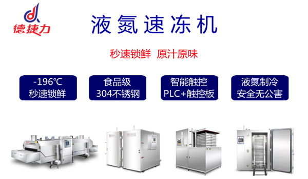 如今,德捷力研發(fā)的液氮速凍設(shè)備包含隧道式液氮速凍機(jī)、液氮速凍柜、浸液式速凍機(jī)等多種類(lèi)型,而得益于先進(jìn)的液氮冷凍工藝以及控溫、液氮款式多樣性等及加工設(shè)備的性能、精確度、生產(chǎn)效率等都有所保障,是廣大的速凍食品生產(chǎn)企業(yè)最優(yōu)選擇。