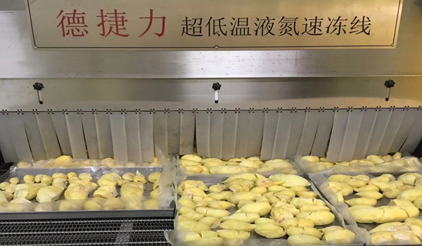 因此速凍榴蓮是最常見(jiàn)也最受歡迎的榴蓮保鮮方式,而德捷力生產(chǎn)的液氮榴蓮速凍機(jī)保鮮的核心是秒速鮮凍。通過(guò)-196℃的液氮進(jìn)行不低于100分鐘的快速冷凍,經(jīng)過(guò)液氮冷凍的榴蓮包裝后會(huì)被馬上轉(zhuǎn)移到-18℃的冷凍庫(kù)儲(chǔ)存,裝箱和發(fā)貨都持續(xù)在-18℃的環(huán)境中完成,經(jīng)過(guò)一段時(shí)間的運(yùn)輸,直到進(jìn)入我國(guó)家的市場(chǎng)銷售。
