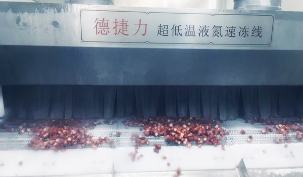 近日安徽某食品科技有限公司采購引用德捷力DJL-QFL-2418液氮速凍隧道,對(duì)草莓進(jìn)行加工處理只需10多分鐘即可完成速凍工藝。