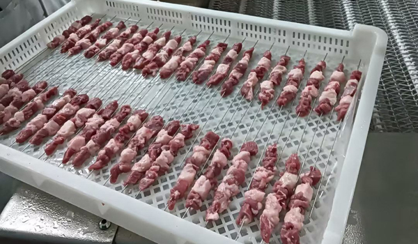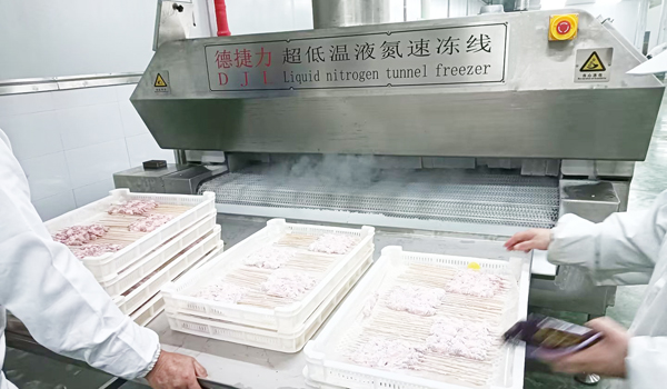 近日,河南省新鄉(xiāng)某食品有限公司采用德捷力隧道式液氮速凍線速凍加工肉串,不但保持肉串的鮮嫩,增加肉串的風(fēng)味和口感。同時(shí),為肉串的安全性更高,食用更加放心,并且液氮速凍肉串的生產(chǎn)量更高,提高燒烤的生產(chǎn)力和烤制速度。這不僅讓消費(fèi)者享受到了更好的肉串產(chǎn)品,還為企業(yè)帶來(lái)商業(yè)運(yùn)營(yíng)中更高效的生產(chǎn)效率和提升商品在同行中有效競(jìng)爭(zhēng)力。