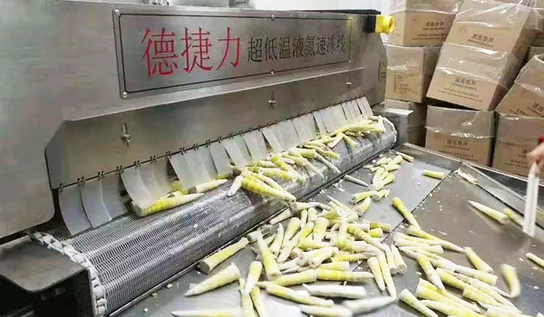 采用德捷力液氮速凍機的竹筍能夠較長時間地保持新鮮度,延長了竹筍的保質(zhì)期。這對于竹筍產(chǎn)地與市場存在距離、物流需求較高的地區(qū)尤為重要,可以使竹筍在運輸和銷售過程中不易腐敗,提供了更長的銷售窗口。 在竹筍市場競爭中能夠為生產(chǎn)商提供更具競爭力的產(chǎn)品,滿足消費者對優(yōu)質(zhì)竹筍的需求。