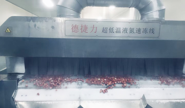 而采用德捷力液氮速凍設(shè)備,可以快速地將草莓冷卻速凍,從而保持草莓的新鮮度,減少營養(yǎng)成分的損失,方便儲存和運(yùn)輸,提升口感。液氮速凍技術(shù)可以最大限度地保留草莓中的水分和營養(yǎng)成分,同時降低微生物污染的風(fēng)險,提高草莓的質(zhì)量和安全。