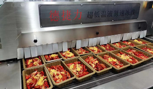 其中德捷力液氮速凍機(jī)自進(jìn)入市場(chǎng)以來(lái),因其卓越性能獲得了多家知名食品企業(yè)的青睞。例如,湖北潛江某大型食品企業(yè)在使用德捷力液氮速凍機(jī)后,顯著提高了小龍蝦預(yù)制菜的生產(chǎn)效率。以往每批次的小龍蝦需要一個(gè)小時(shí)才能冷卻至合適溫度,而使用德捷力之后,僅需10分鐘即可完成,而產(chǎn)品口感于先前的新鮮現(xiàn)貨無(wú)異。