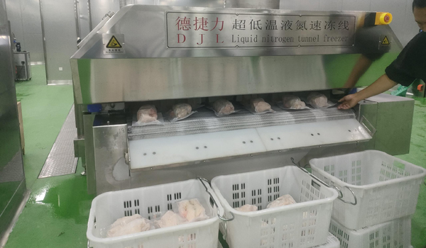 2.營(yíng)養(yǎng)成分保留:液氮速凍可以有效鎖住雞肉中的營(yíng)養(yǎng)成分。傳統(tǒng)凍存方法往往需要較長(zhǎng)時(shí)間,而長(zhǎng)時(shí)間冷凍會(huì)導(dǎo)致部分營(yíng)養(yǎng)素流失。而采用德捷力液氮速凍機(jī),可以實(shí)現(xiàn)瞬間低溫處理,更好地保留維生素等營(yíng)養(yǎng)元素。不用再擔(dān)心營(yíng)養(yǎng)成分的流失。